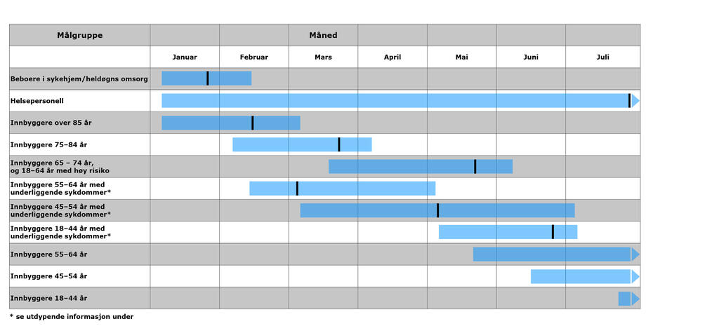 *vertikal strek i grafikk = alle skal ha fått tilbud om første dose